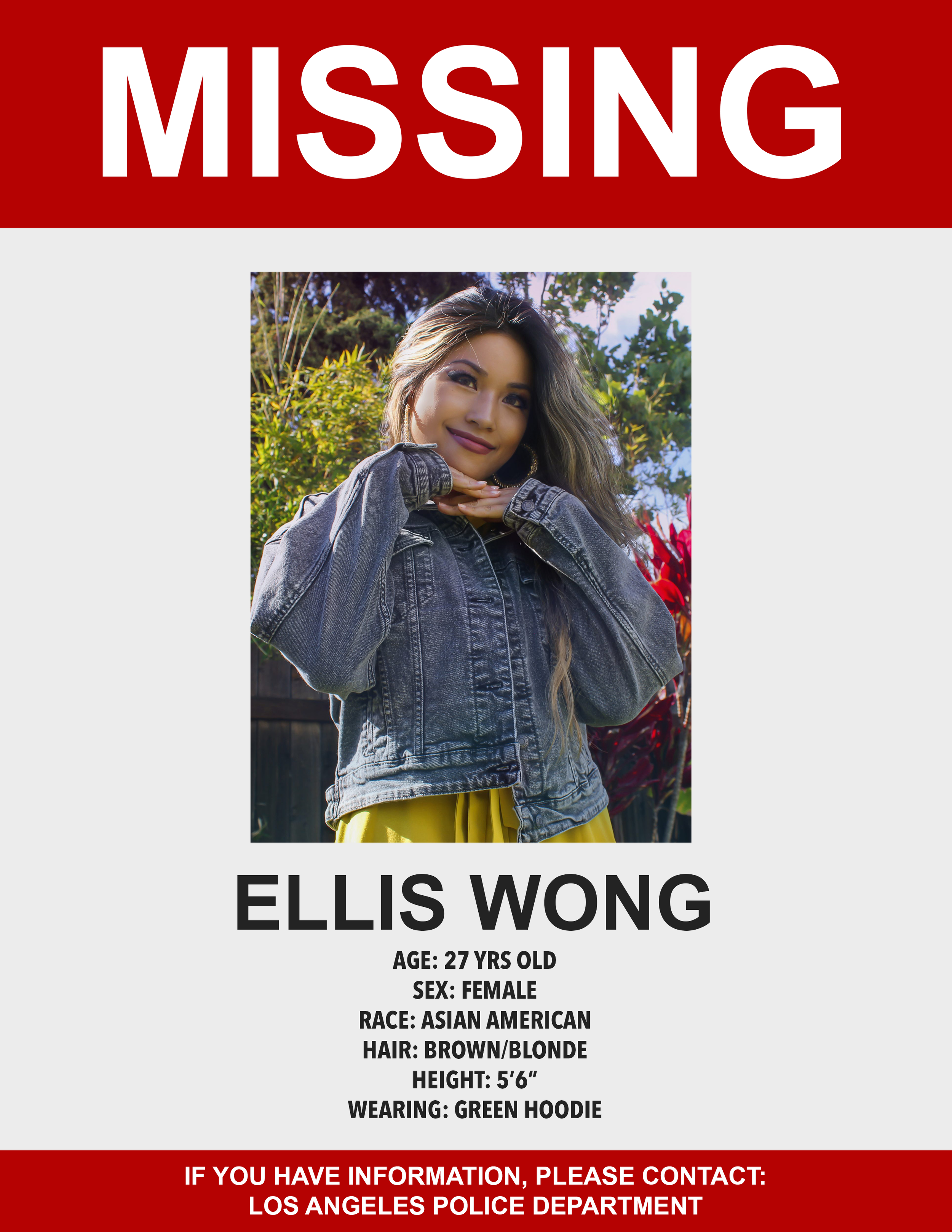 Wong, who had over 500K followers across Cliqlak, and YouTube, was last seen leaving a late-night studio space in Koreatown around 1:17 a.m. Surveillance footage shows her walking alone — looking over her shoulder repeatedly — as if she believed she was being followed.